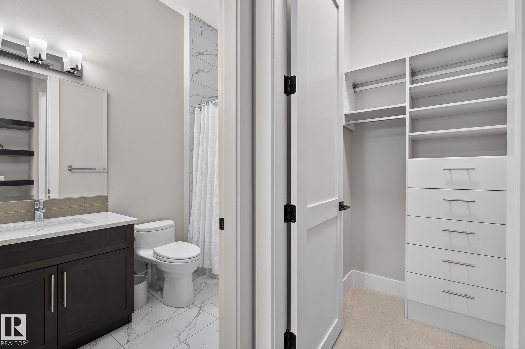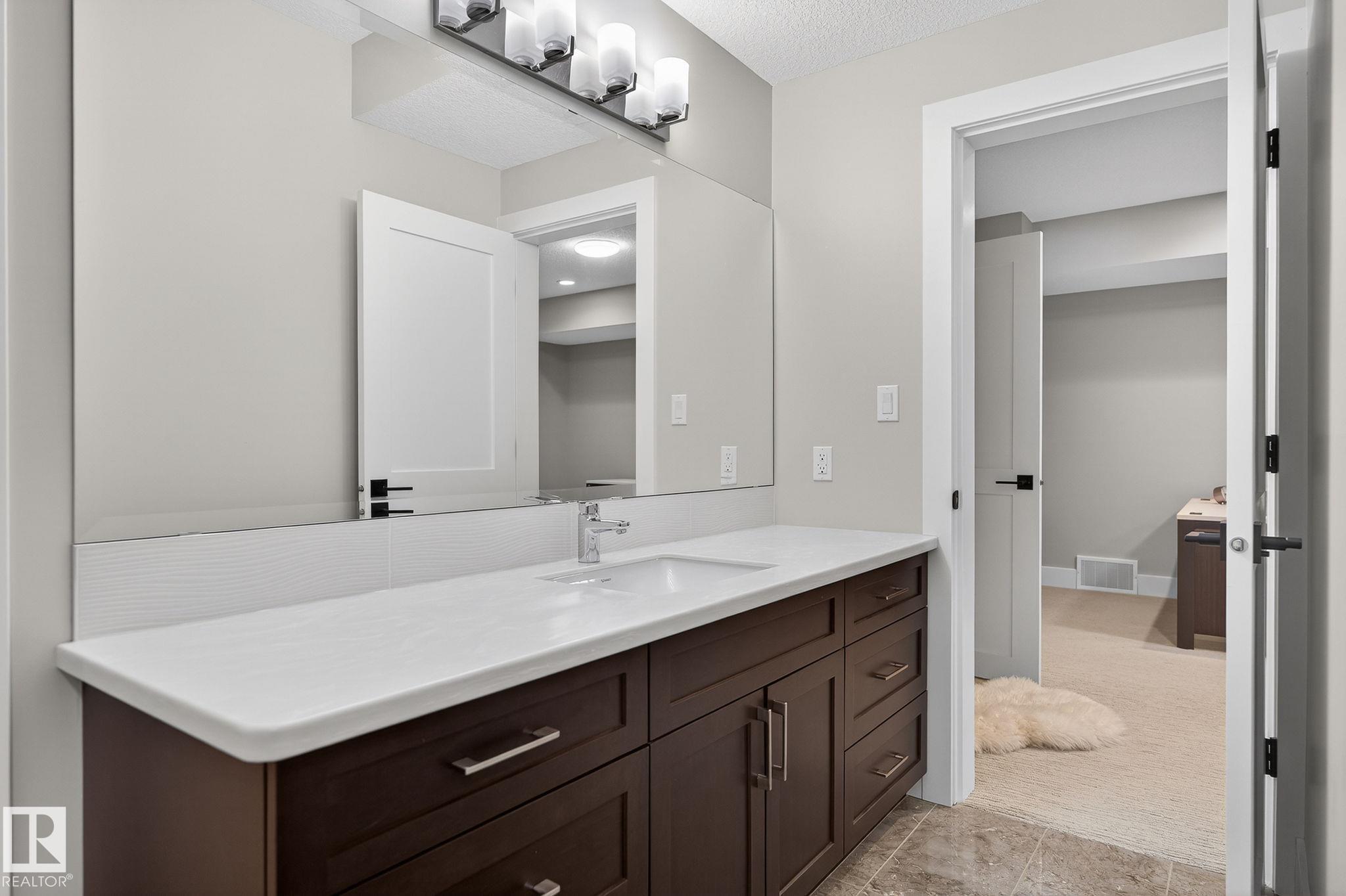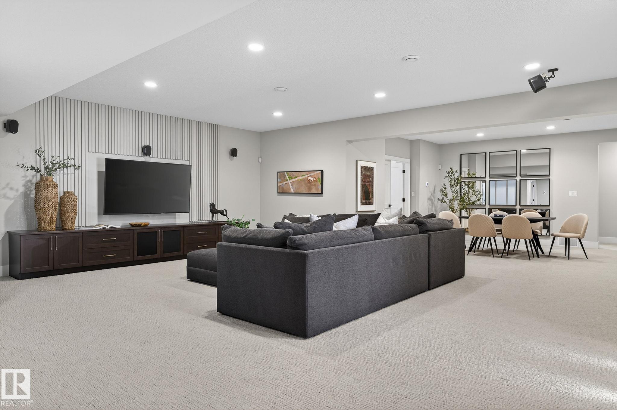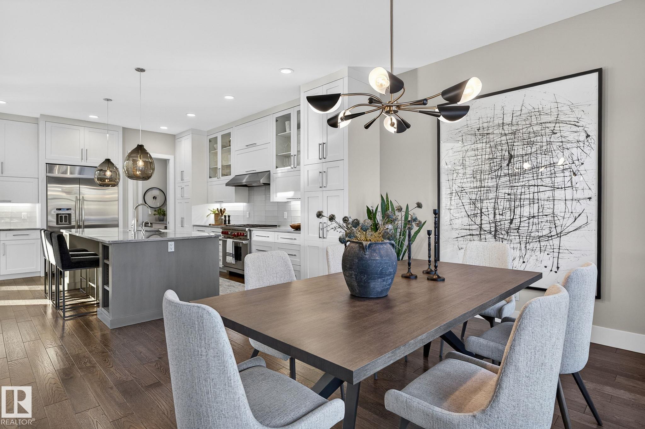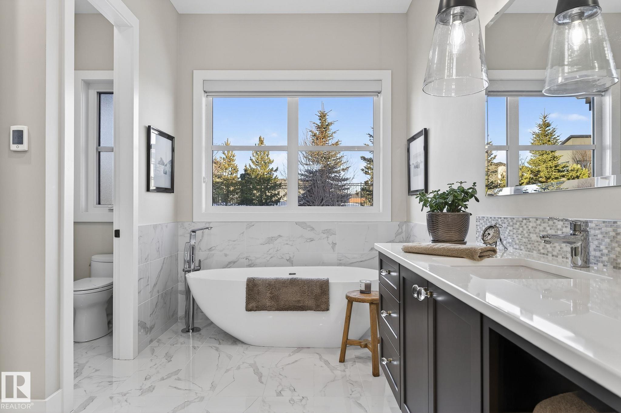 Nestled on a private, sprawling property in Rural Sturgeon County, this luxurious executive bungalow offers over 5,400 sq ft of thoughtfully designed living space, combining elegance with functionality. The open-concept main floor features soaring ceilings, a sun-filled great room with floor-to-ceiling windows, and a striking fireplace. The chef-inspired kitchen boasts quartz counters, professional-grade appliances, custom cabinetry, and a walk-through pantry. The primary retreat includes a spa-like ensuite with a soaker tub, dual vanities, a walk-in shower, and a custom closet. A second bedroom with ensuite, mudroom, and laundry complete the main level. The lower level features two bedrooms, a Jack-and-Jill bath, expansive family room with wet bar, gym, and storage. Outdoors, landscaped grounds, tiered patios, and a triple garage with workshop offer the perfect blend of luxury, privacy, and country living minutes from St. Albert and Edmonton.