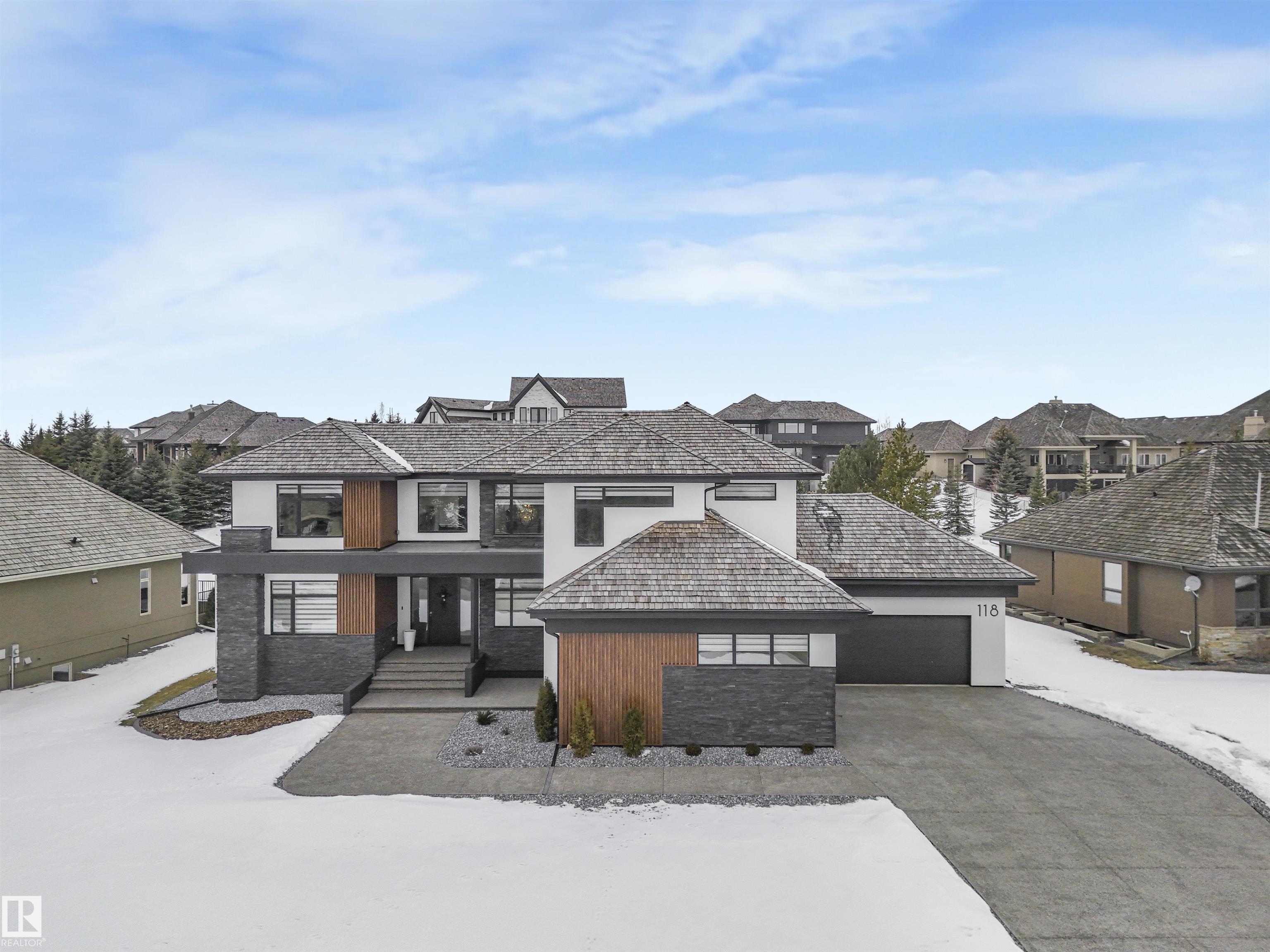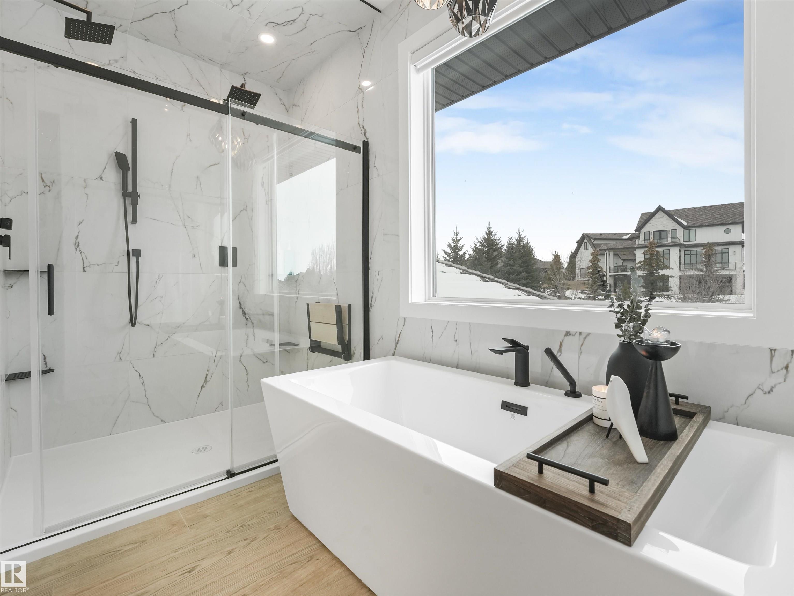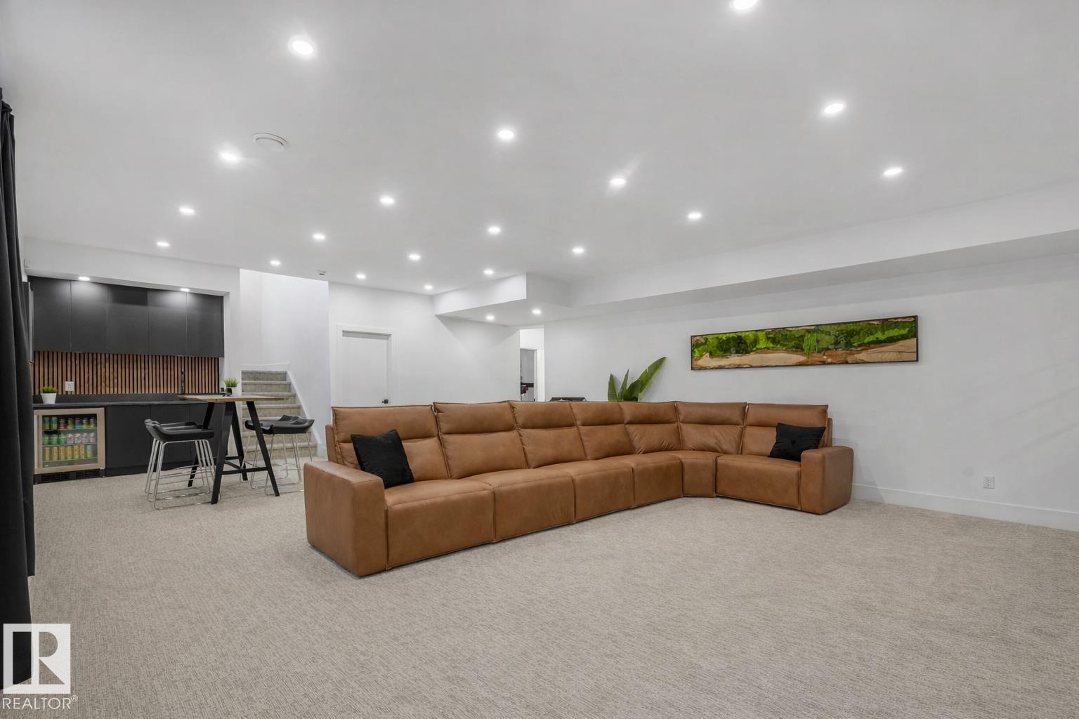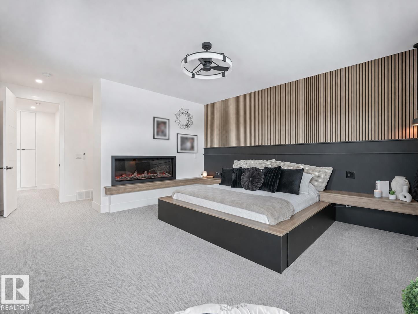 This thoughtfully designed home showcases clean lines and REFINED STYLE across 4,875 sqft of finished living space. Featuring plenty of windows for natural light, durable wood-look tile flooring, central A/C, 6 bedrooms, & 4.5 baths. The well-appointed kitchen is a dream for culinary enthusiasts, offering ample cabinetry, quartz countertops, induction cooktop, Sub-Zero fridge & freezer, walk-in pantry, & wine storage. The dining area easily accommodates large gatherings, while the elegant living room is anchored by a cozy fireplace. Upstairs, enjoy built-in workstations & a luxurious primary suite with a 5pc ensuite & a connected screened-in HOT TUB RETREAT. The fully finished basement includes 2 bedrooms, 3pc bath, spacious family & recreation room, wet bar, & in-floor heating. The QUAD garage comes complete with a pet bath, built in storage, drain, & heated floors. Set on 0.52 acres of beautifully landscaped grounds with a charming covered rear deck, this home is a true masterpiece!