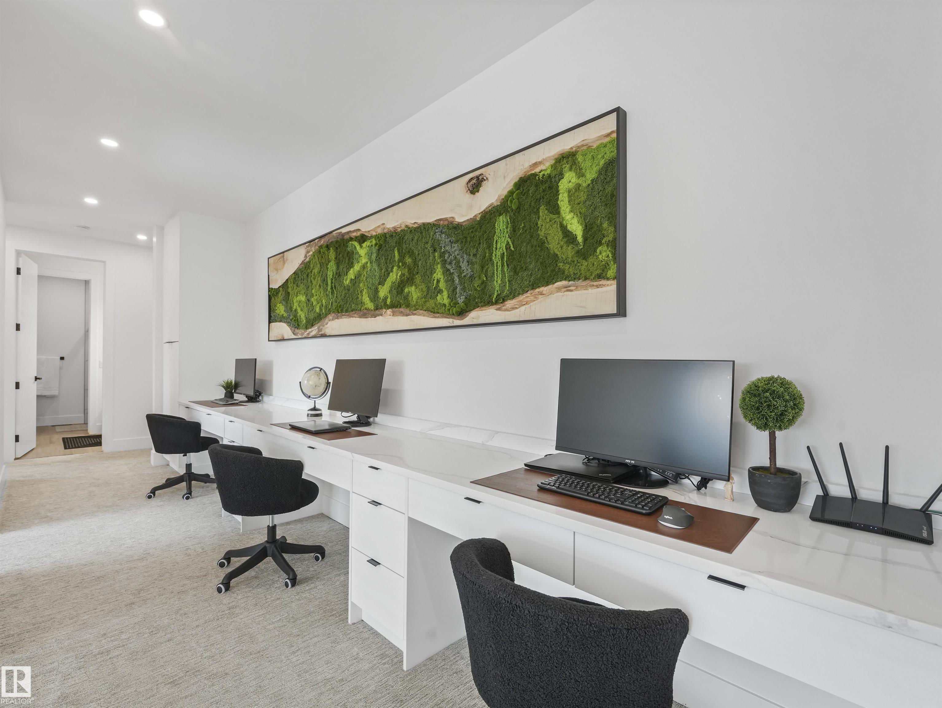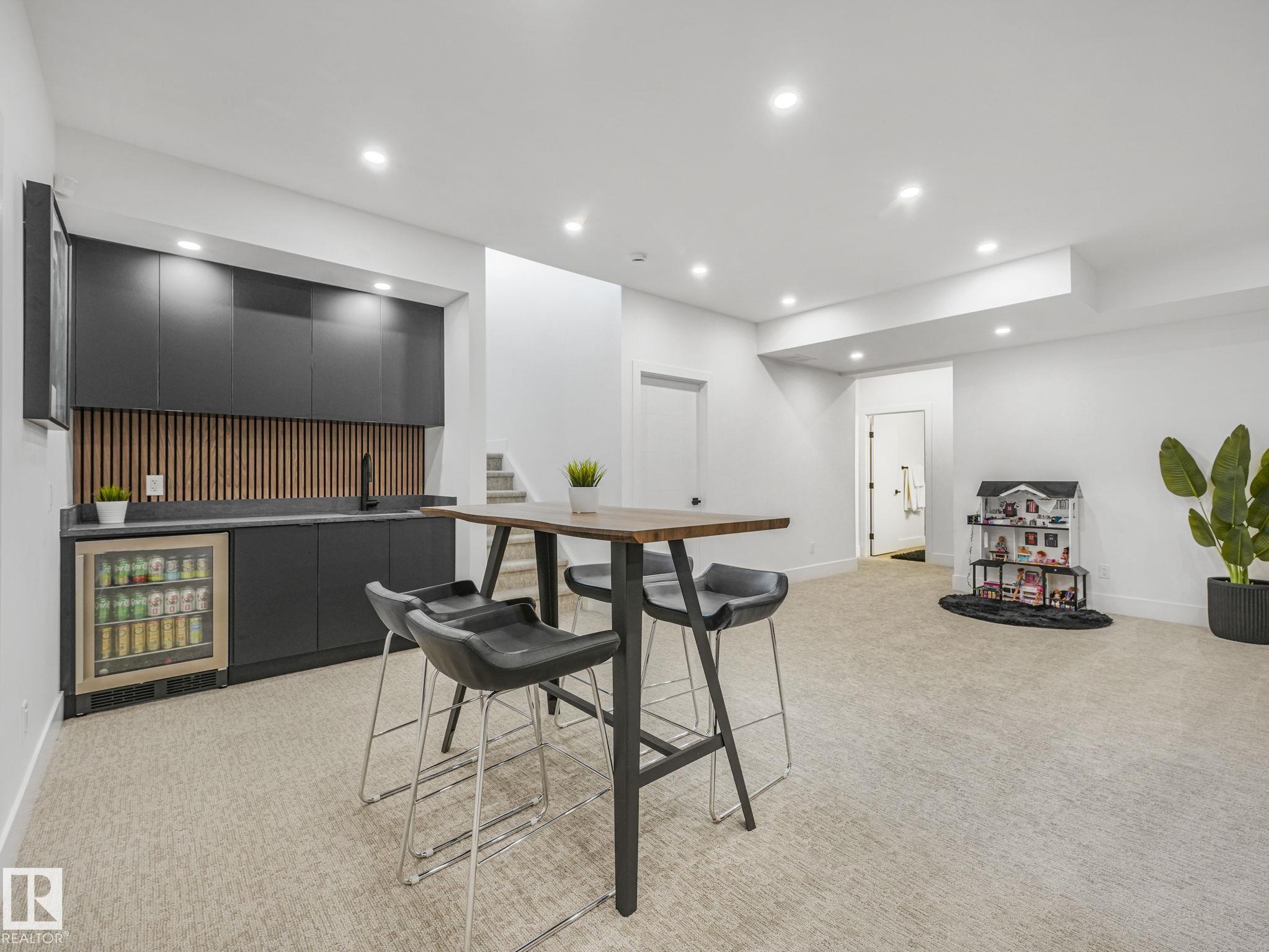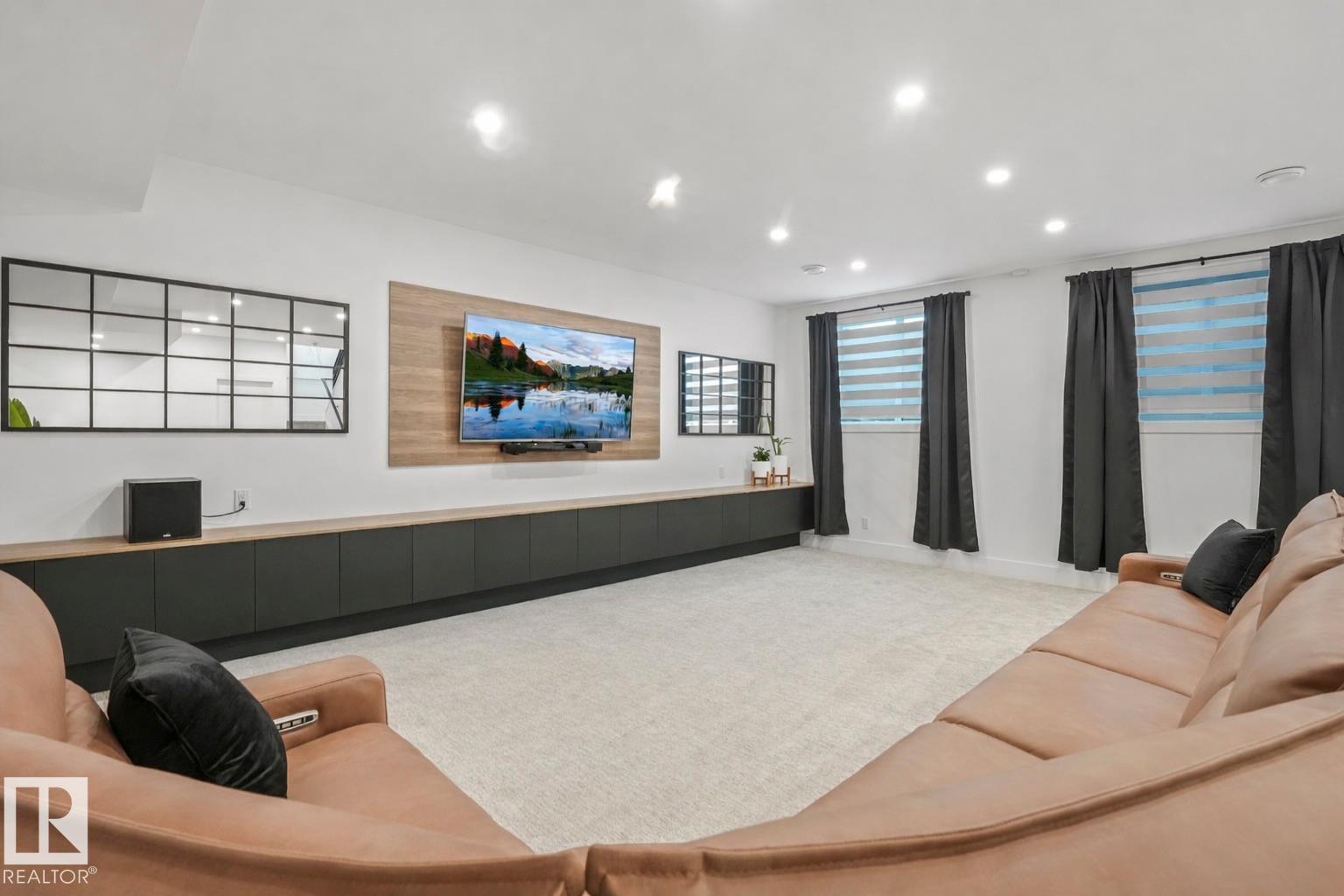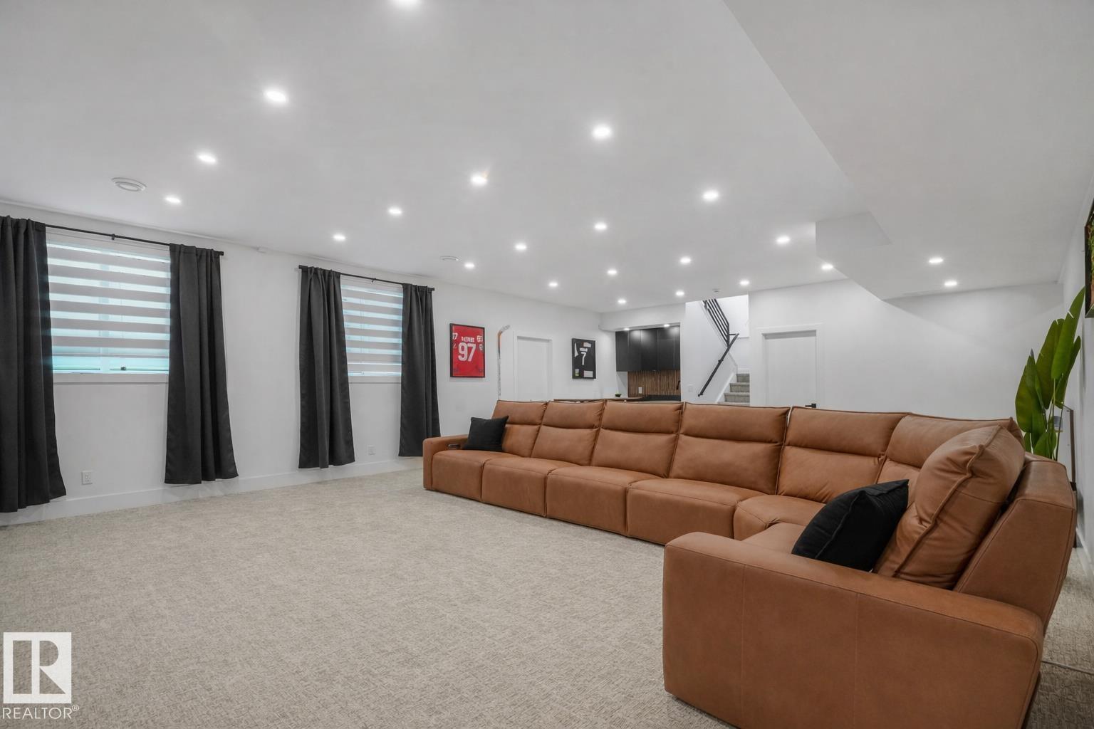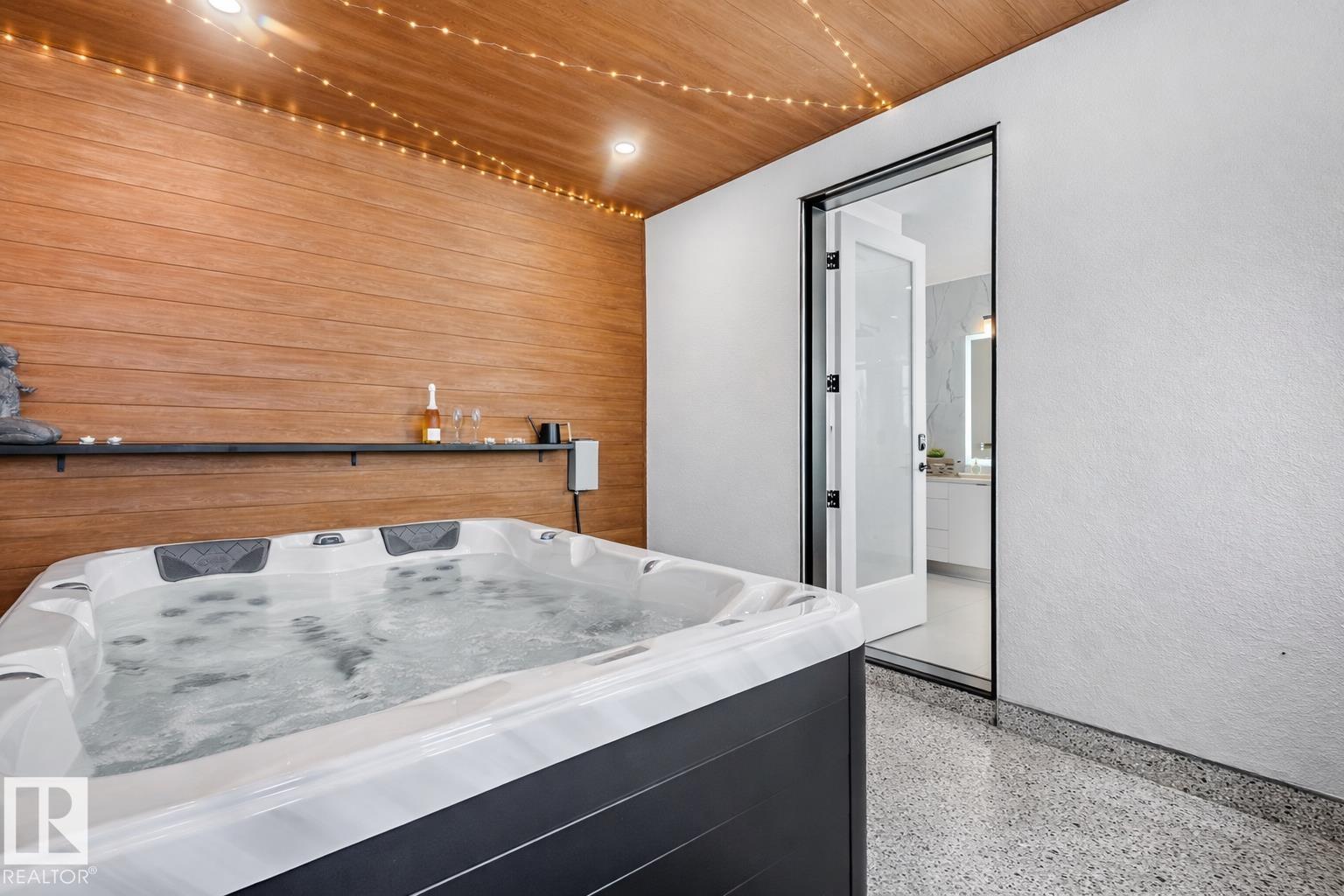 This thoughtfully designed home showcases clean lines and REFINED STYLE across 4,875 sqft of finished living space. Featuring plenty of windows for natural light, durable wood-look tile flooring, central A/C, 6 bedrooms, & 4.5 baths. The well-appointed kitchen is a dream for culinary enthusiasts, offering ample cabinetry, quartz countertops, induction cooktop, Sub-Zero fridge & freezer, walk-in pantry, & wine storage. The dining area easily accommodates large gatherings, while the elegant living room is anchored by a cozy fireplace. Upstairs, enjoy built-in workstations & a luxurious primary suite with a 5pc ensuite & a connected screened-in HOT TUB RETREAT. The fully finished basement includes 2 bedrooms, 3pc bath, spacious family & recreation room, wet bar, & in-floor heating. The QUAD garage comes complete with a pet bath, built in storage, drain, & heated floors. Set on 0.52 acres of beautifully landscaped grounds with a charming covered rear deck, this home is a true masterpiece!