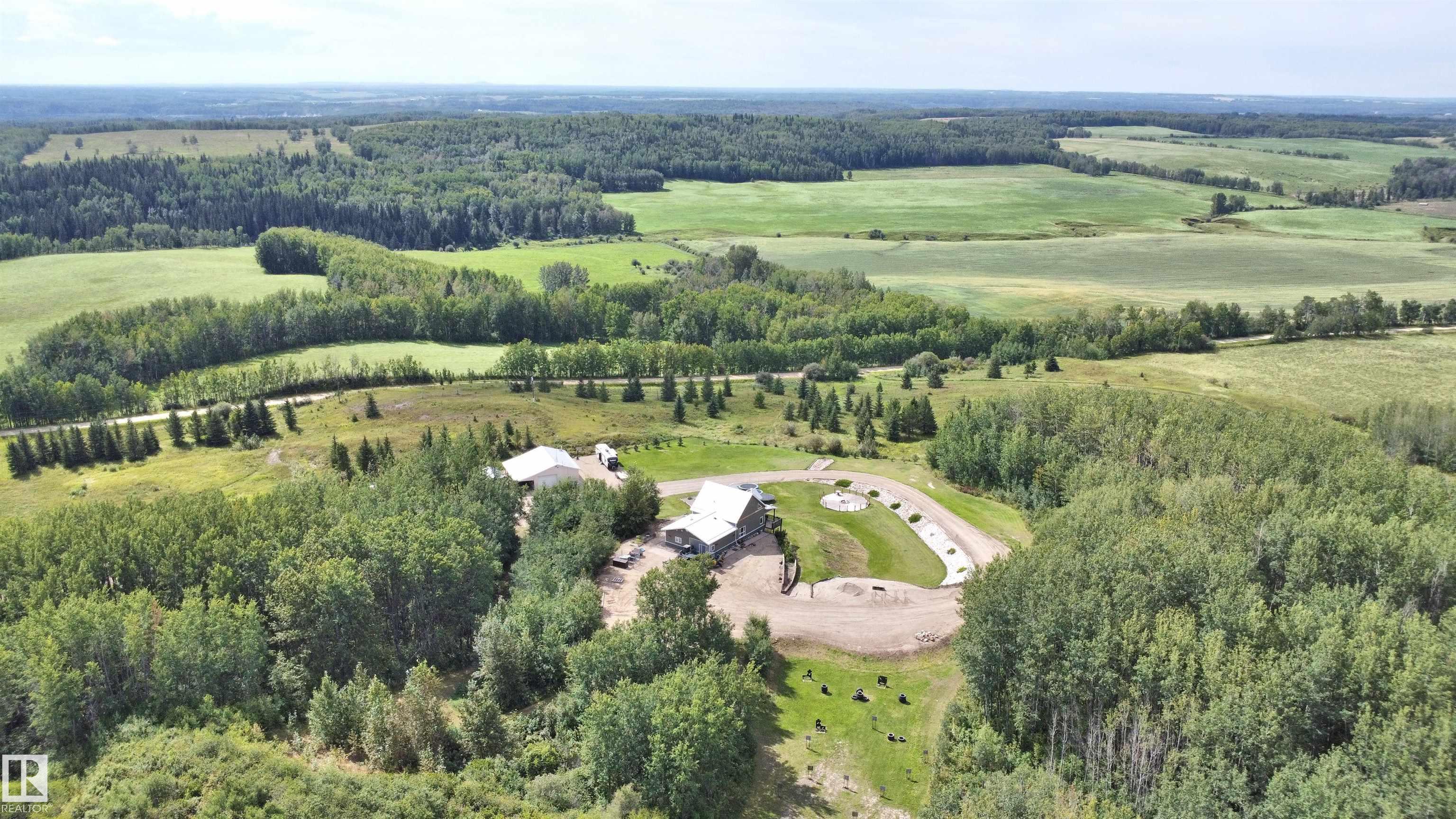 WOW! 147 Acres of rolling hills with amazing views!! This incredibly beautiful property features a fully renovated 1 1/2 storey, 4 bedroom, 4 bath, hilltop home with a walkout basement. The chef in the family is going to love the magazine worthy kitchen featuring a massive eat-up island, ss appliances, quartz everywhere, huge pantry and the open dining area with cozy wood stove. Spend your morning drinking coffee on the covered deck while enjoying the spectacular view. Main floor includes a luxurious primary suite with fireplace, massive custom walk-in closet, and spa-like 5-piece ensuite. Top floor features 2 large bedrooms, 5 piece bath, and flex area. The fully finished, walk-out, basement features a family room, bedroom, 3 piece bath and laundry. Property includes a heated 40' x 33' shop, horse shelter, corrals, tons of quad trails and so much more. 40 minutes to Stony and 1 hour to Edmonton. Come see your new home!