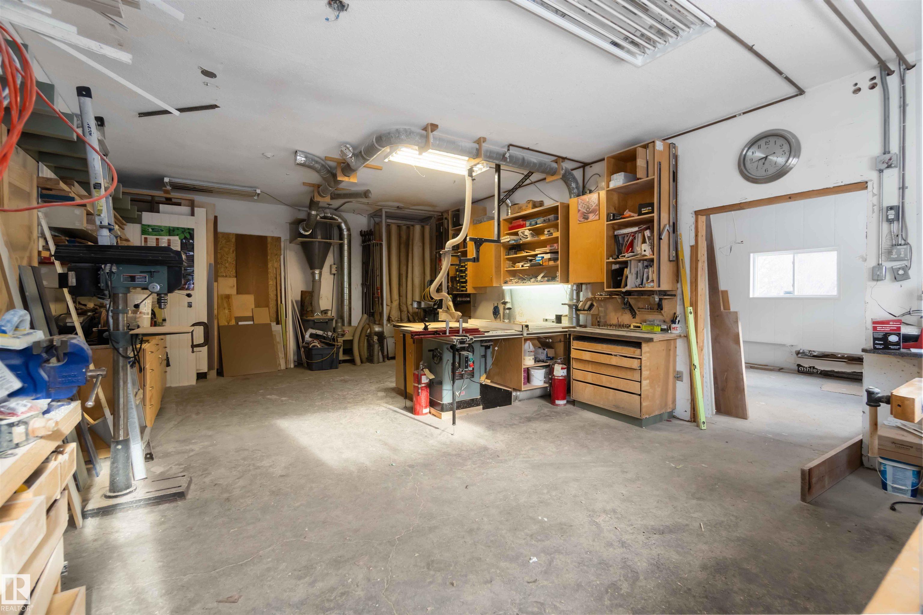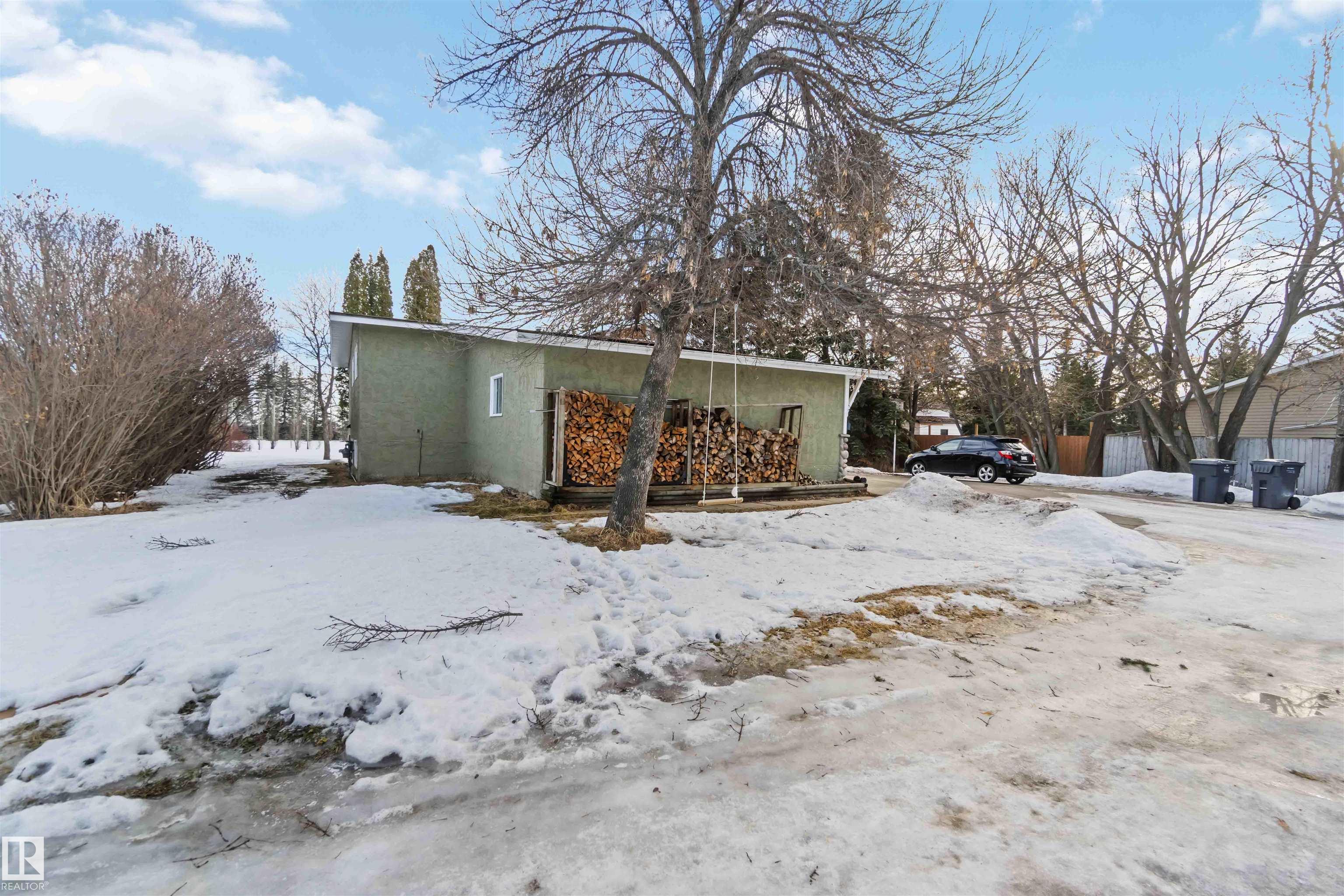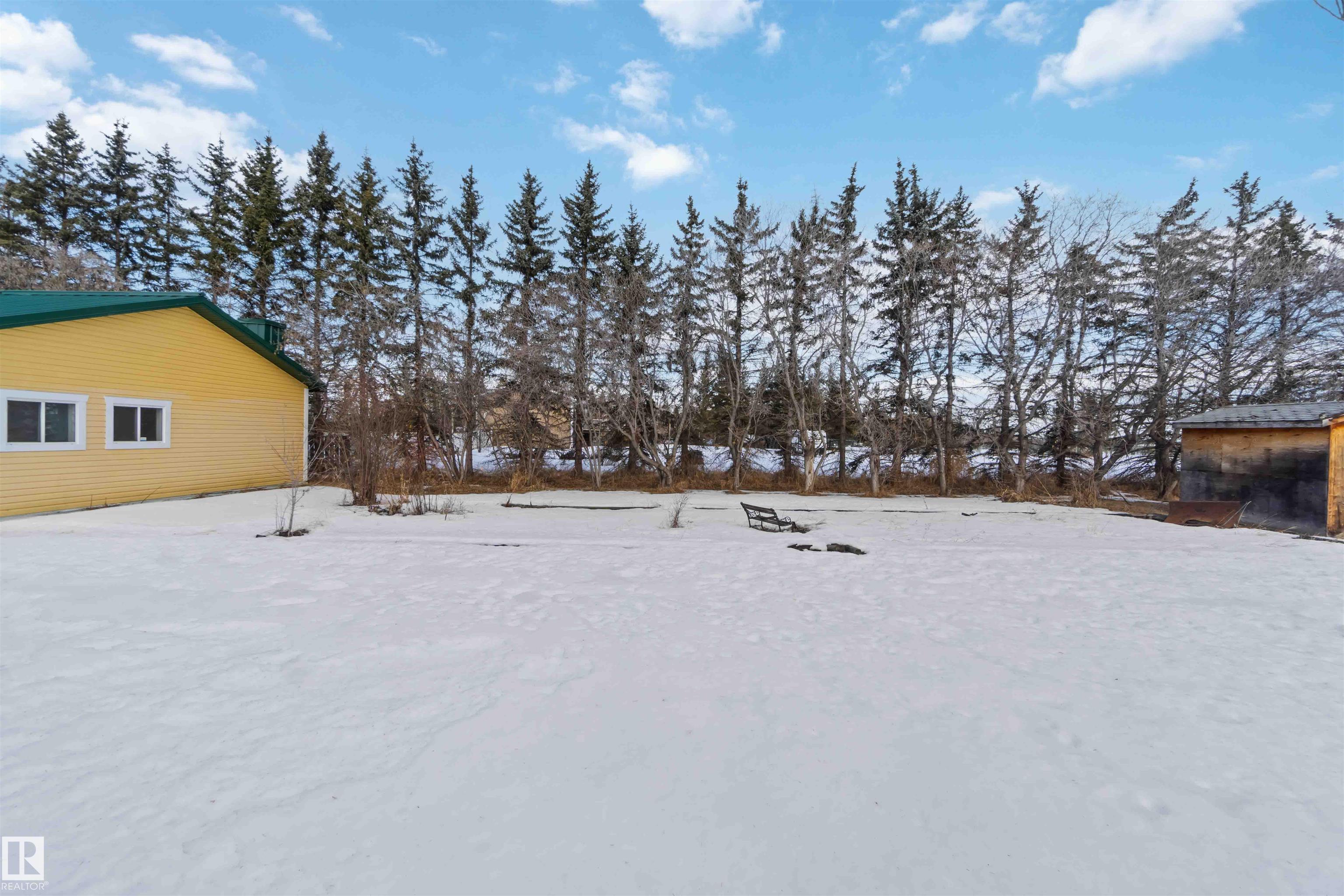 Over 2 acres of beautiful acreage-style living in the hamlet of Villeneuve, just 10 minutes west of St. Albert. This property is serviced with city water and a septic tank connected to the city septic system. A true dream shop measuring 82' x 30' plus loft features in-floor heating and is ideal for woodworking, mechanical projects, or storing all your toys. The main floor of the house offers a functional layout with a cozy wood-burning stove, large kitchen, and two bedrooms, with the option to convert the main-floor laundry back into a third bedroom. A 4-piece main bath and extensive built-in cabinetry add to the home's charm and practicality. The fully developed basement includes two additional bedrooms, a 3-piece bathroom, and a spacious recreation room. Recent upgrades include most windows, the furnace, and the hot water tank.