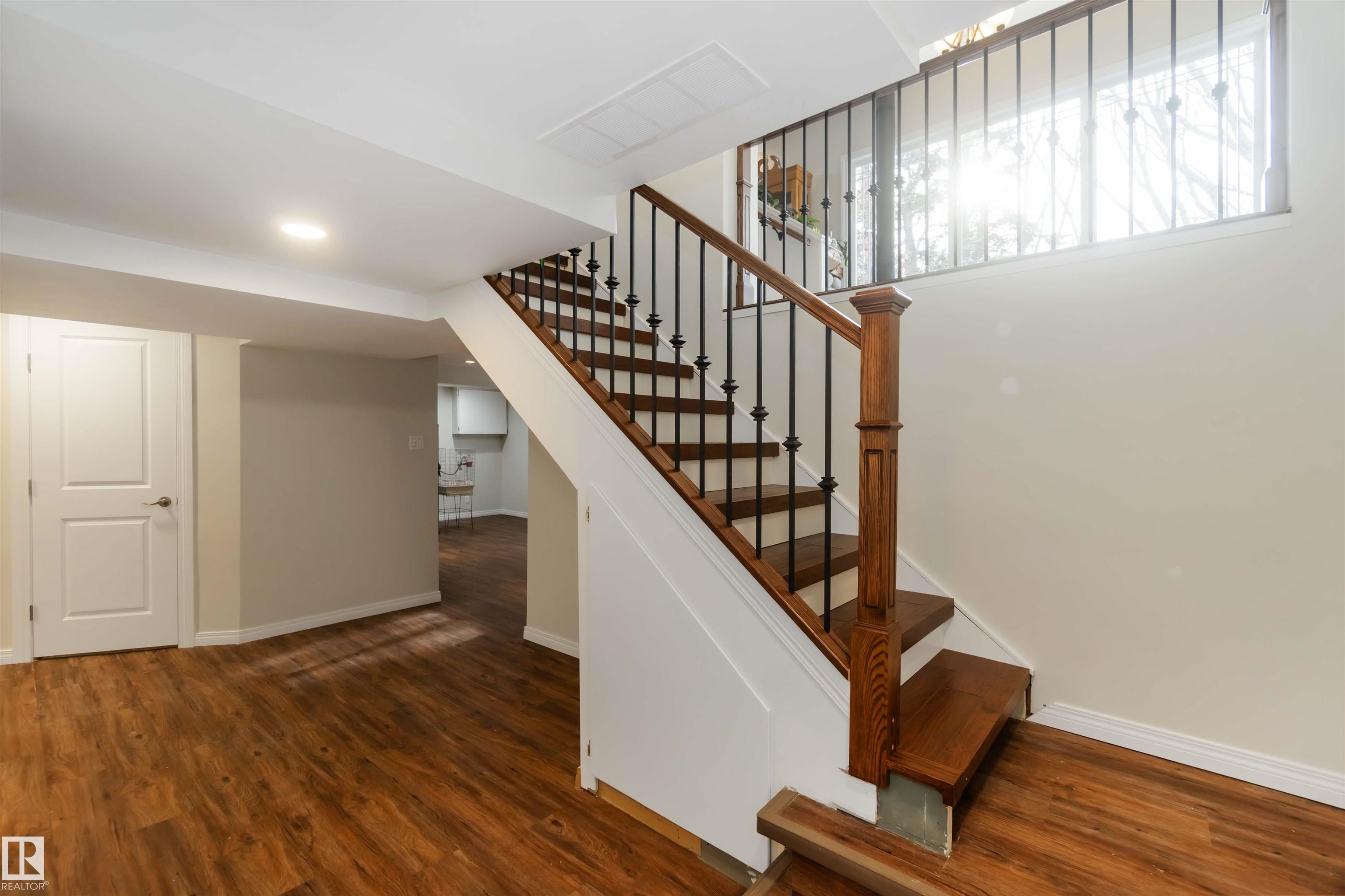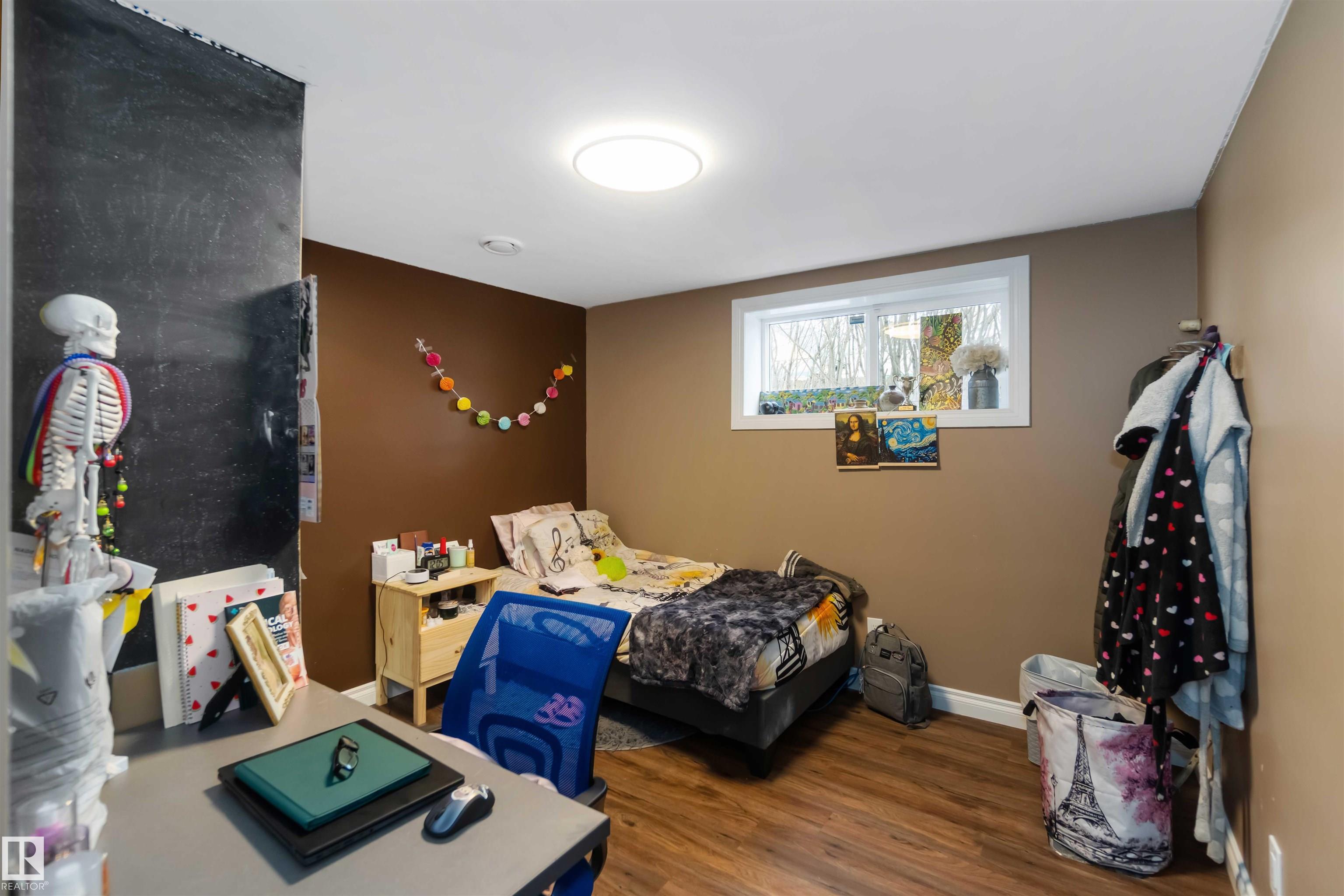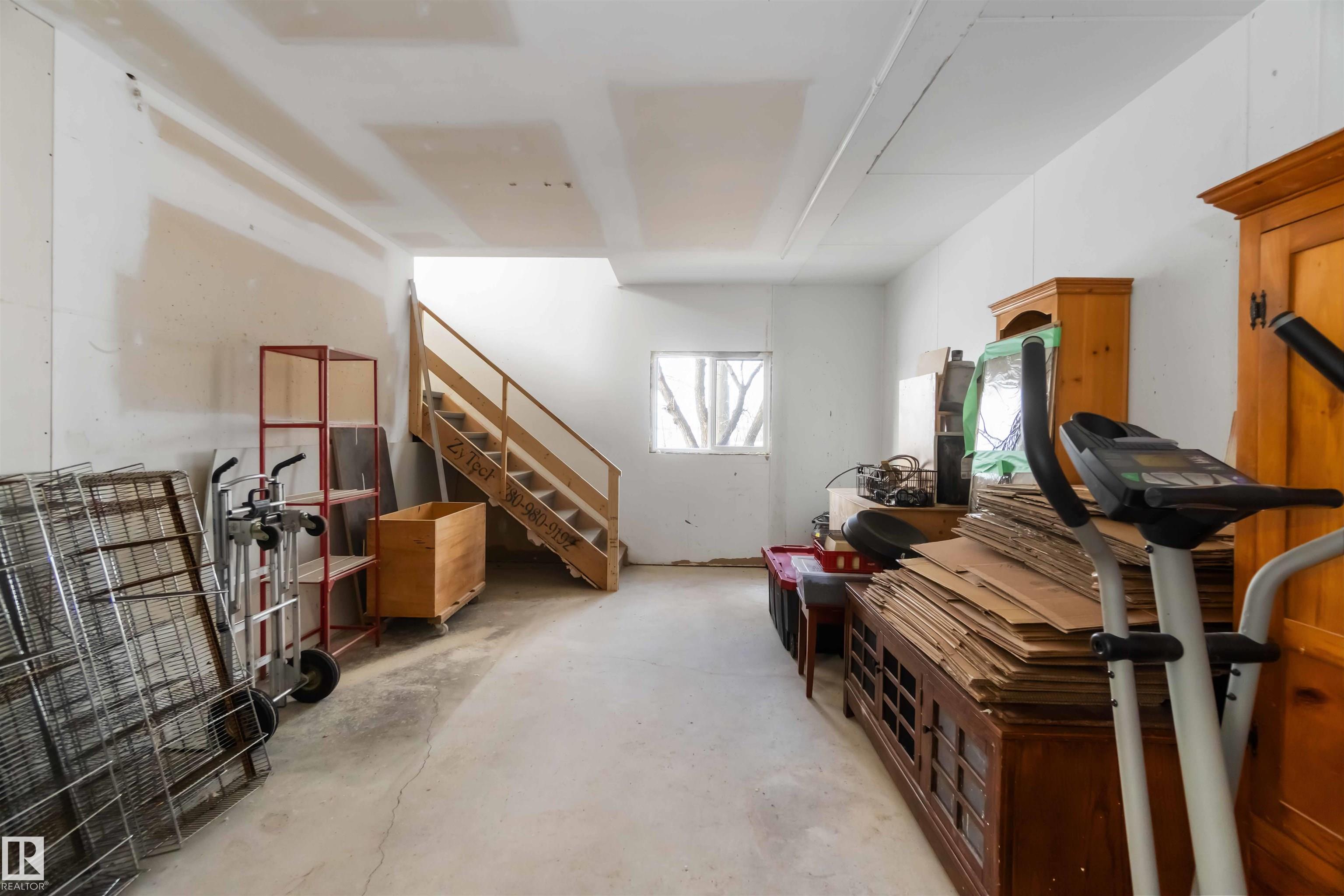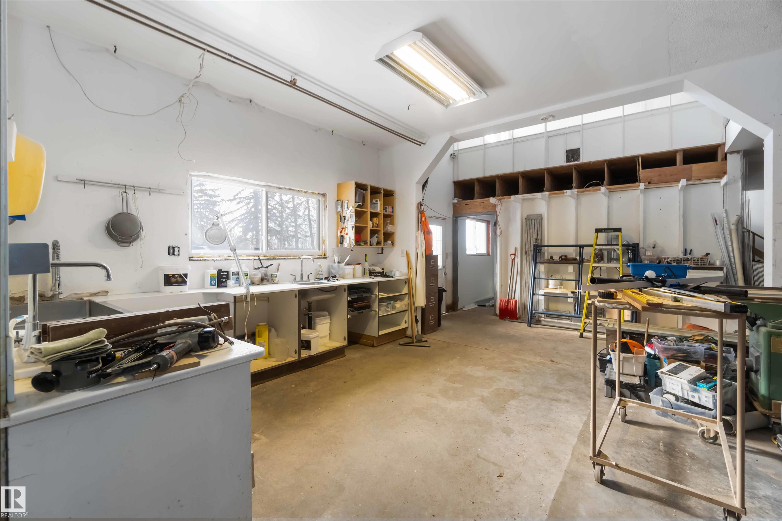 Over 2 acres of beautiful acreage-style living in the hamlet of Villeneuve, just 10 minutes west of St. Albert. This property is serviced with city water and a septic tank connected to the city septic system. A true dream shop measuring 82' x 30' plus loft features in-floor heating and is ideal for woodworking, mechanical projects, or storing all your toys. The main floor of the house offers a functional layout with a cozy wood-burning stove, large kitchen, and two bedrooms, with the option to convert the main-floor laundry back into a third bedroom. A 4-piece main bath and extensive built-in cabinetry add to the home's charm and practicality. The fully developed basement includes two additional bedrooms, a 3-piece bathroom, and a spacious recreation room. Recent upgrades include most windows, the furnace, and the hot water tank.
