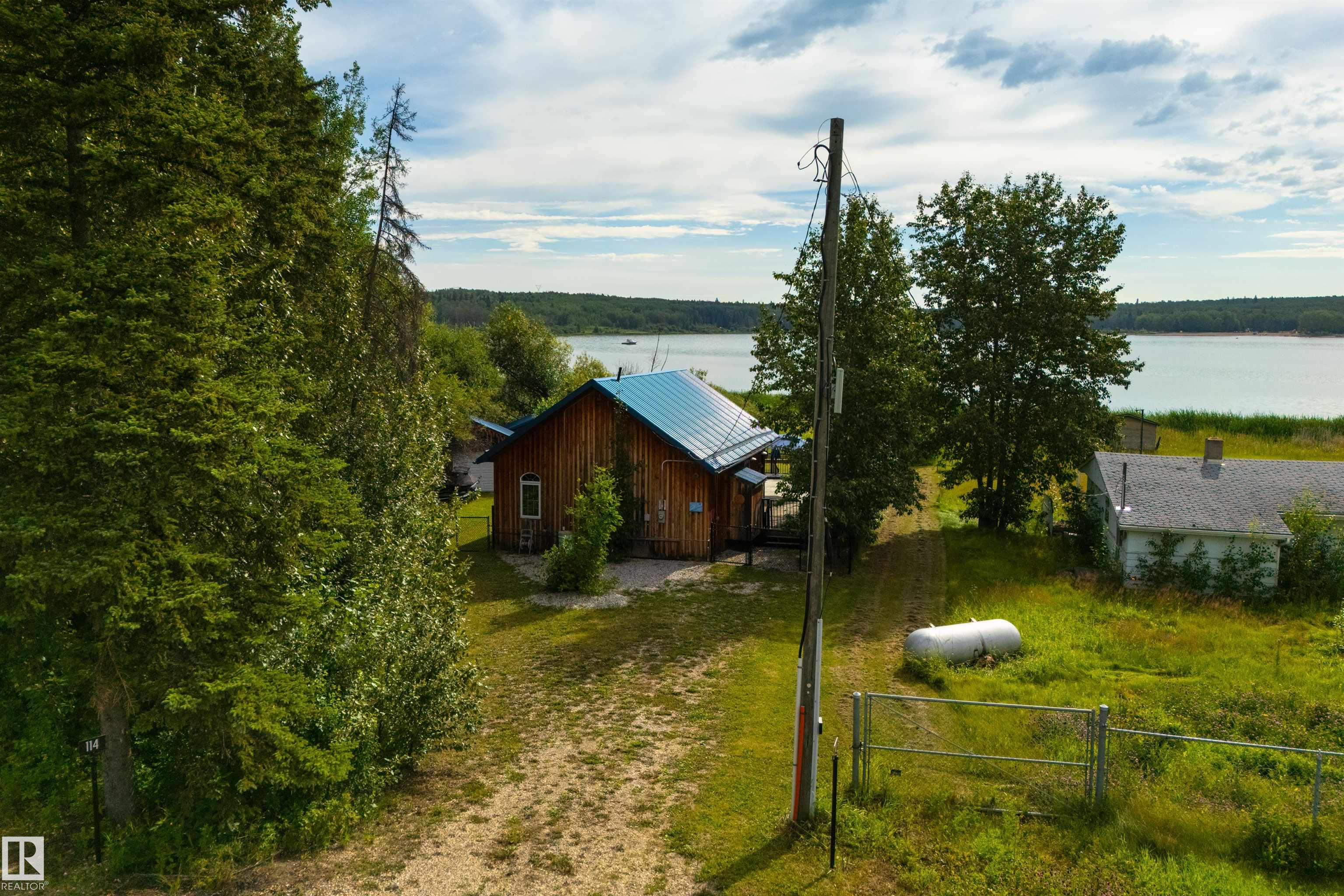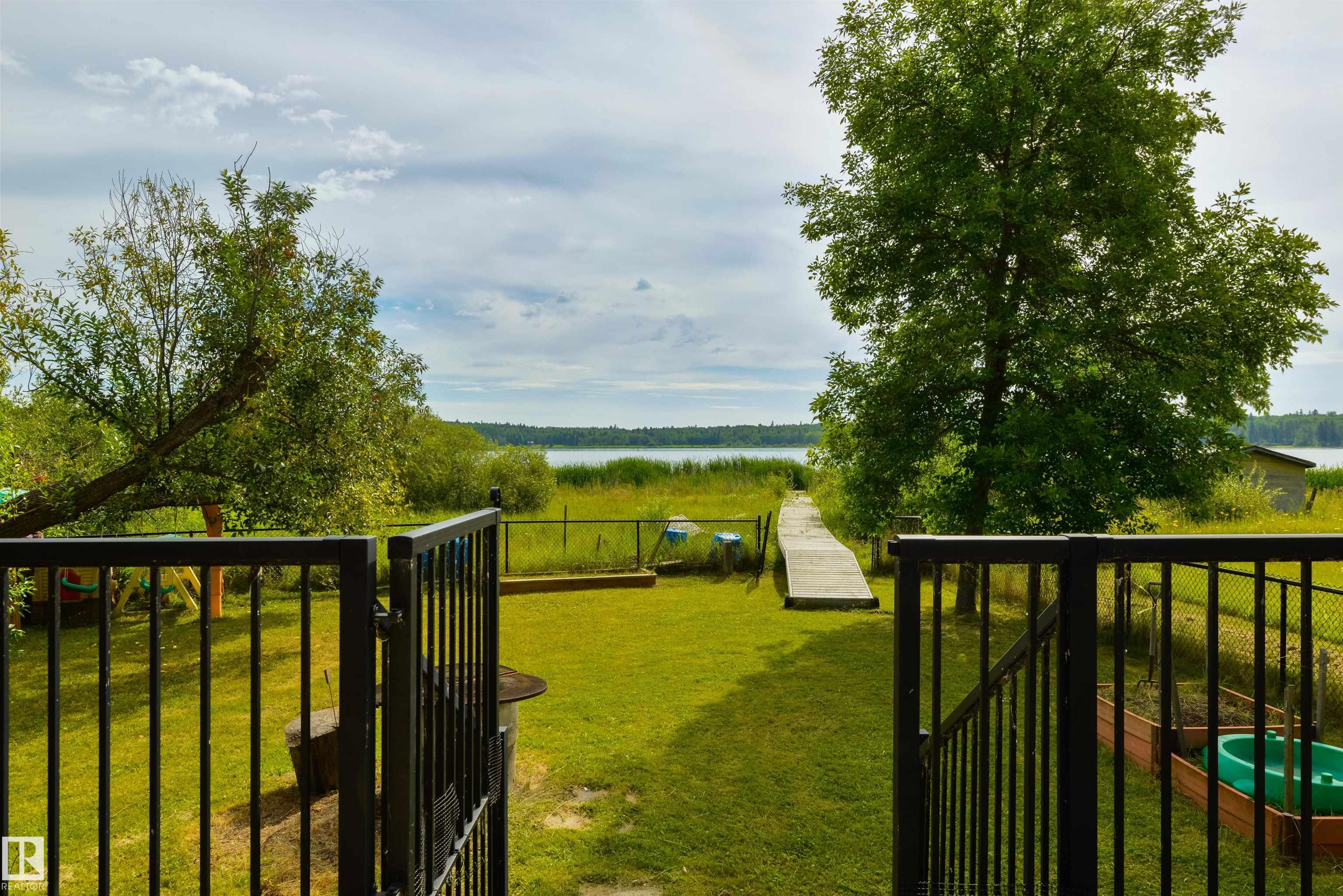 LAKEFRONT on Lake Wabamun!! Situated in the exclusive GATED community of the Summer Village of Lakeview, this 4-season home is tucked away at the end of the cul-de-sac, offering you the utmost in privacy. Features here include an open layout, in-floor heat, vaulted ceilings, a great kitchen & living room, 2 bedrooms, a 4pc bath with shared laundry, single-detached garage, metal roof, newer boiler & pressure tank (2023), and a fantastic full-width deck to relax & entertain. The best part? Everything you see is included (all the furniture, boat, dock, etc) - all you have to do is move in! If you've been dreaming of a lakefront escape, this is your chance to seize the opportunity - lake life is calling!