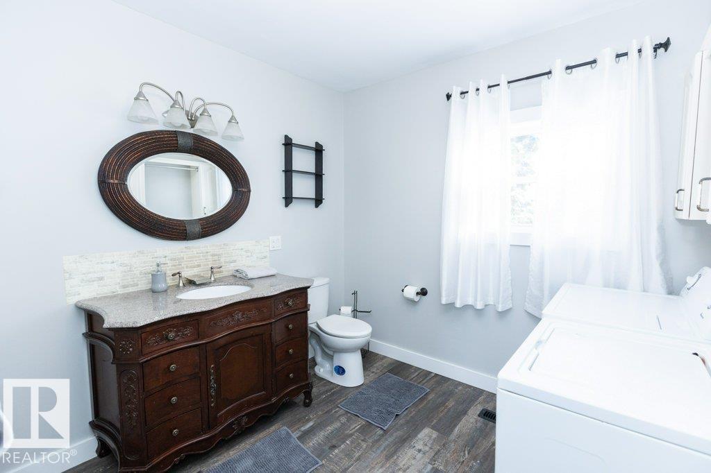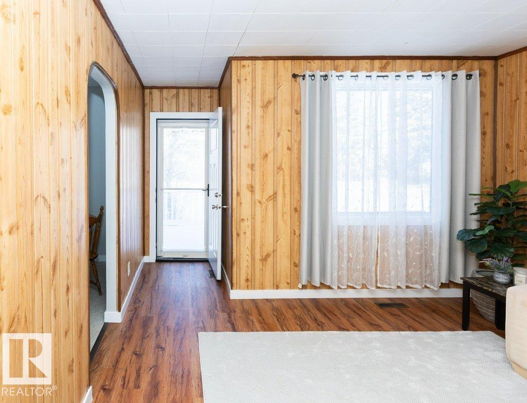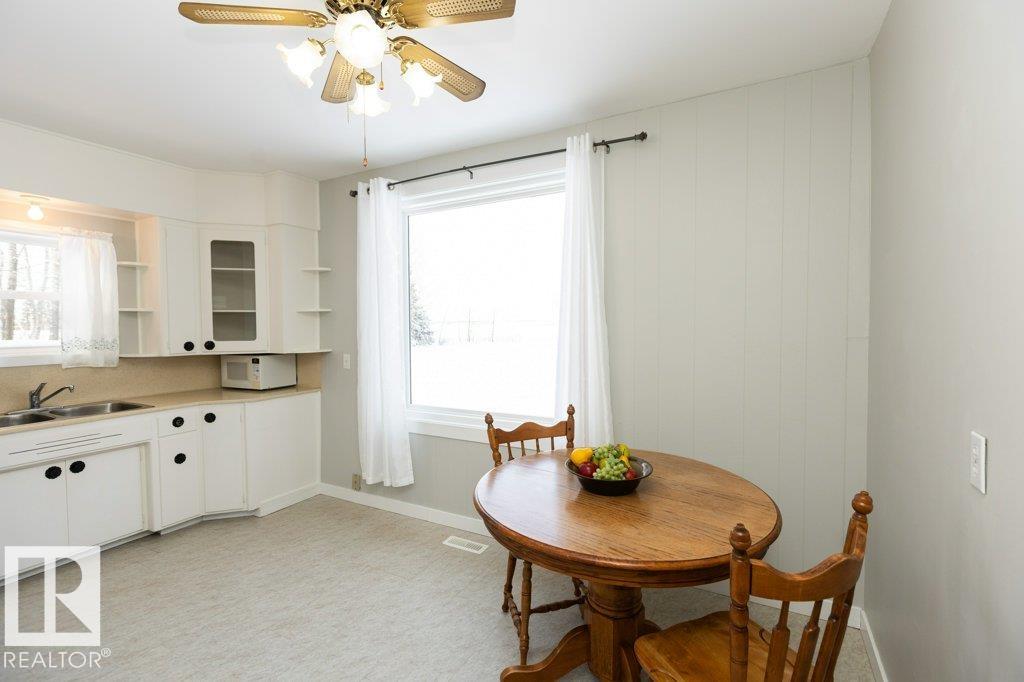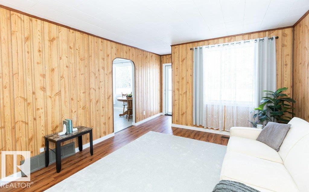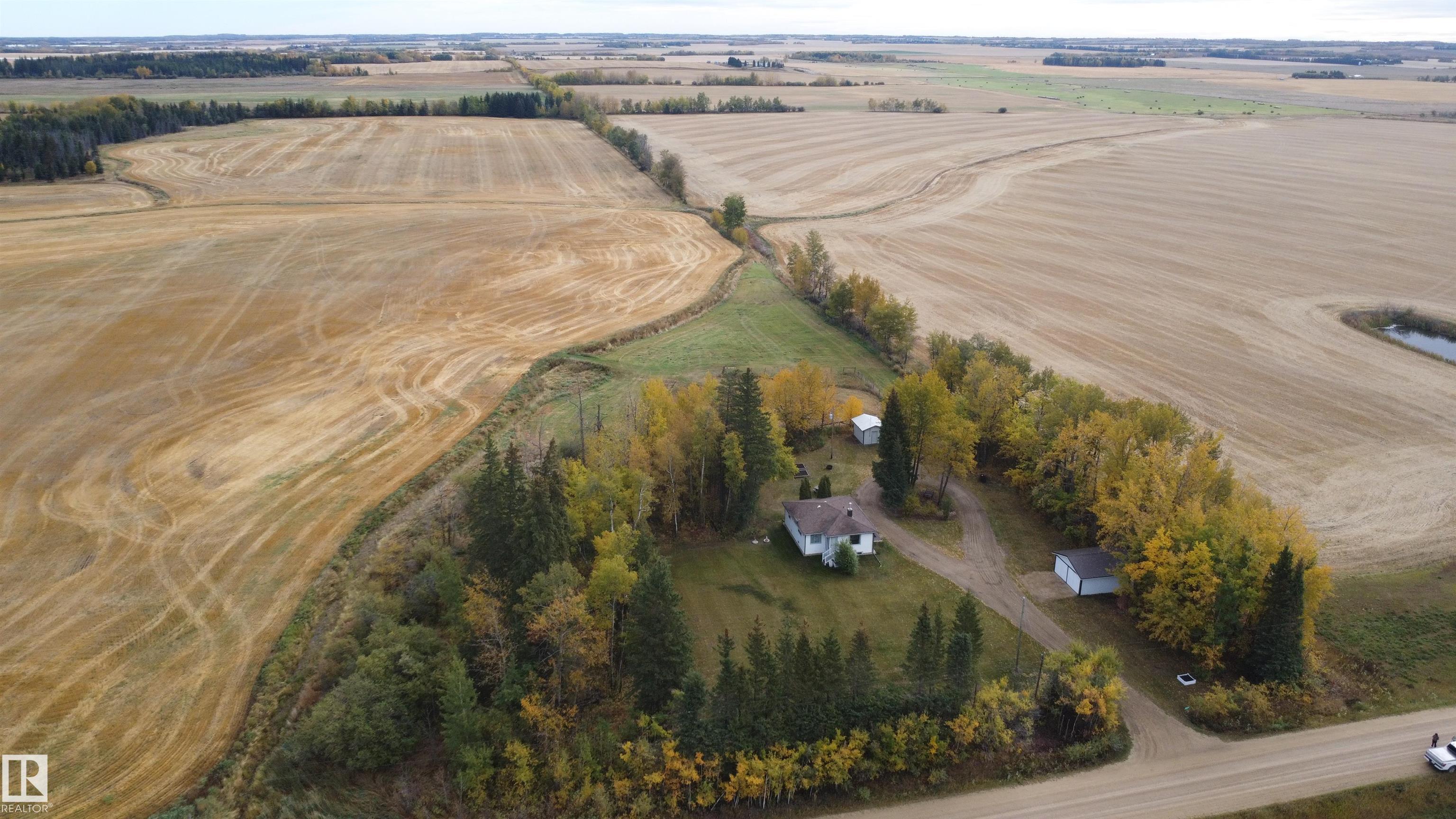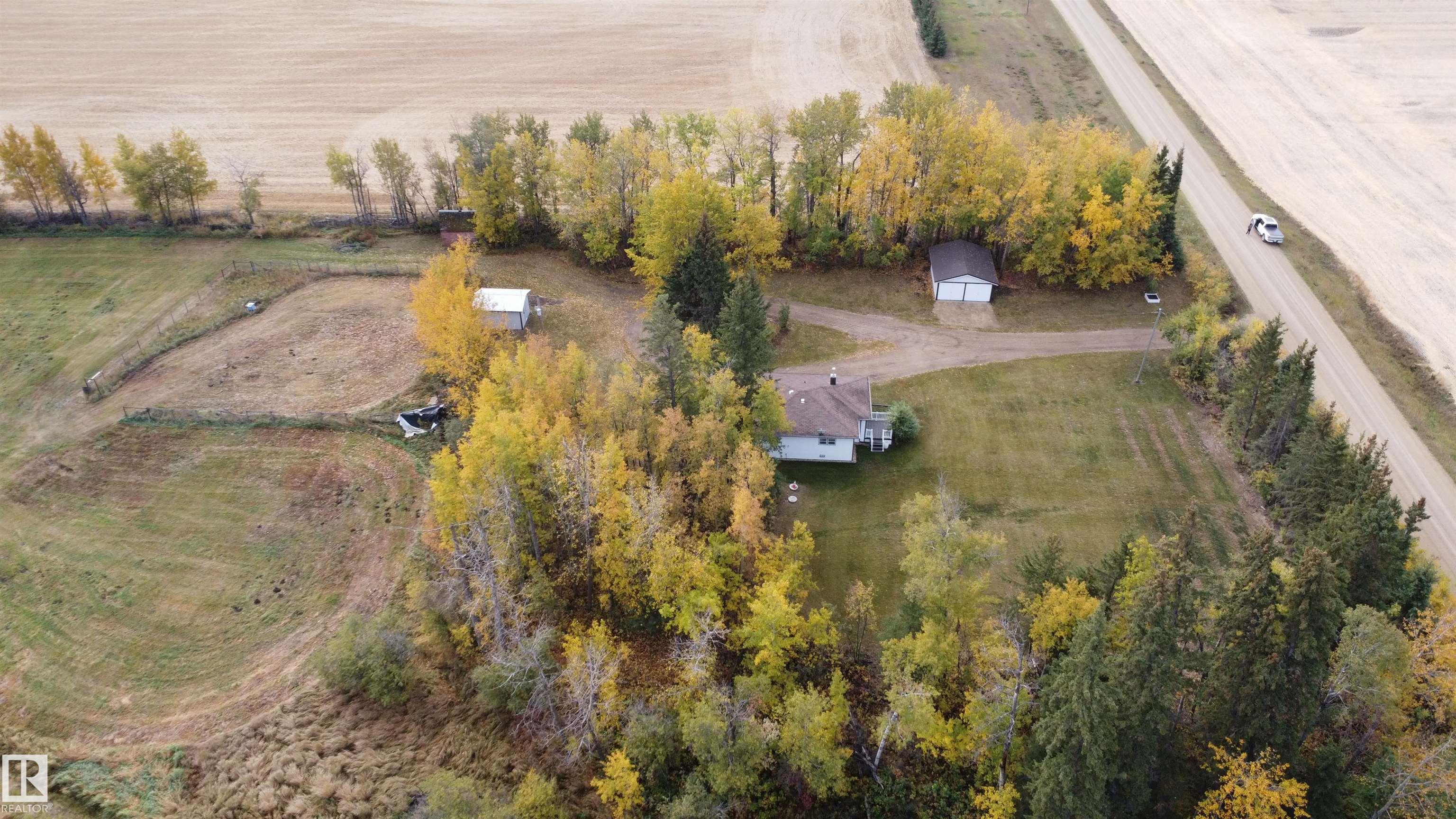 GET AWAY FROM IT ALL! 3.11 acres with older 934 sq ft renovated home that has been well taken care of. Main floor has bright west facing kitchen w/huge window facing front yard, white kitchen cabinets & appliances. Spacious living room w/door to front deck (updated in last 5 years), down the hall you will find 4 pce bathroom w/laundry. 2 bdrms the master having a large walk in closet . Downstairs is wide open & ready to be finished w/ newly poured floor, mech & cold room. Home has had many updates incl rigid styrofoam & siding, vinyl windows, flooring, paint, bathroom fixtures, 100 amp electrical service, etc. Outside you will find a mature treed yard w/ new septic field system installed in 2023, fresh landscaping with rock and window wells, newer pump house, exterior of garage has been done with metal, etc. There is a auto waterer in the east pen w/ lots of room for small animals. Property runs along a small creek line, has an amazing windbreak & has a flowing artesian well. 1 mile from Hwy 777.