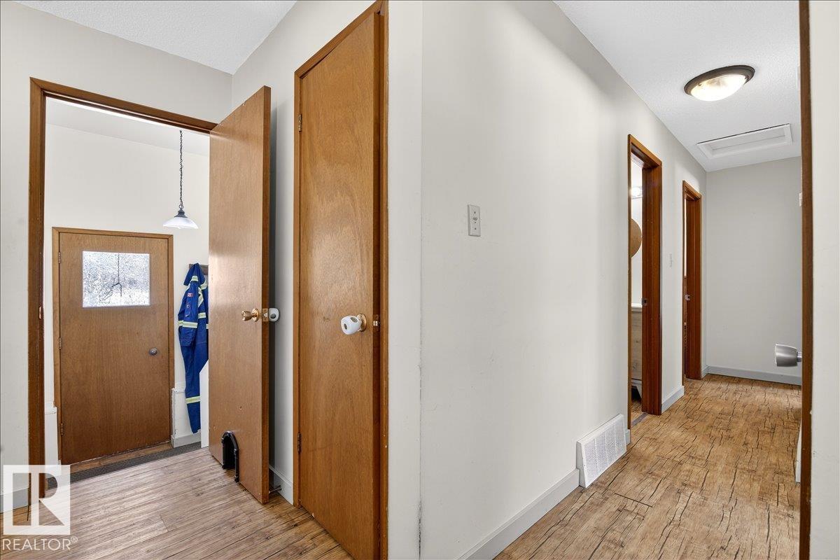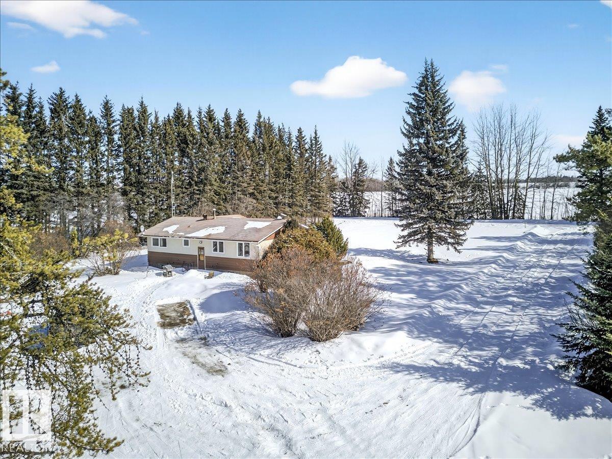 Escape to the peace and privacy of country living on this beautiful 11.1-acre property in Rural Westlock County. This 1,098 sq. ft. bungalow offers 4 beds, 2.5 baths, a den, and a fully finished basement. The thoughtfully designed floor plan features laminate flooring throughout, large bright windows, and plenty of functional living space. The kitchen has ample cabinet and counter space, a gas stove, refrigerator and built-in dishwasher. Adjacent to the kitchen is a spacious dining area with room for all your guests. With 3 generously sized bedrooms on the main floor, the basement offers an additional family room, a bedroom, a den, and a 3-piece bathroom. Outside, enjoy a heated workshop, corral, animal shelter, and additional outbuildings. Located just minutes off Hwy 44, only 5 mins to Fawcett, 10 mins to Hidden Valley Golf Course, and quick access to the scenic Pembina River. Surrounded by mature trees and beautiful landscaping, this private oasis offers tranquility in the peaceful countryside.