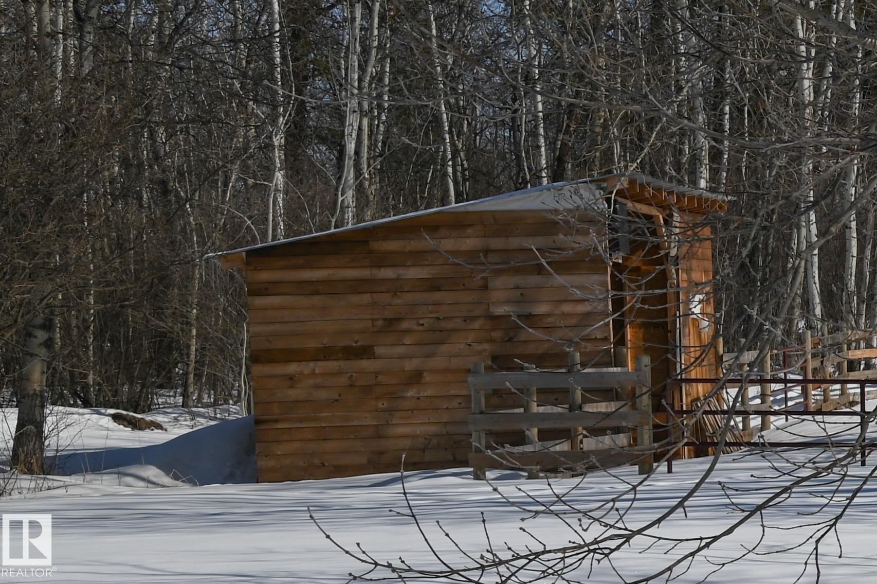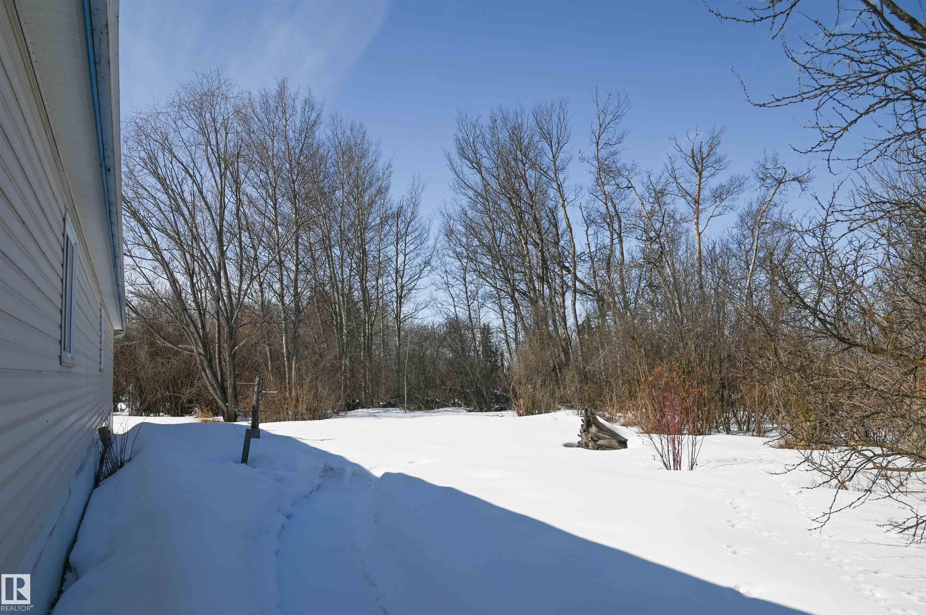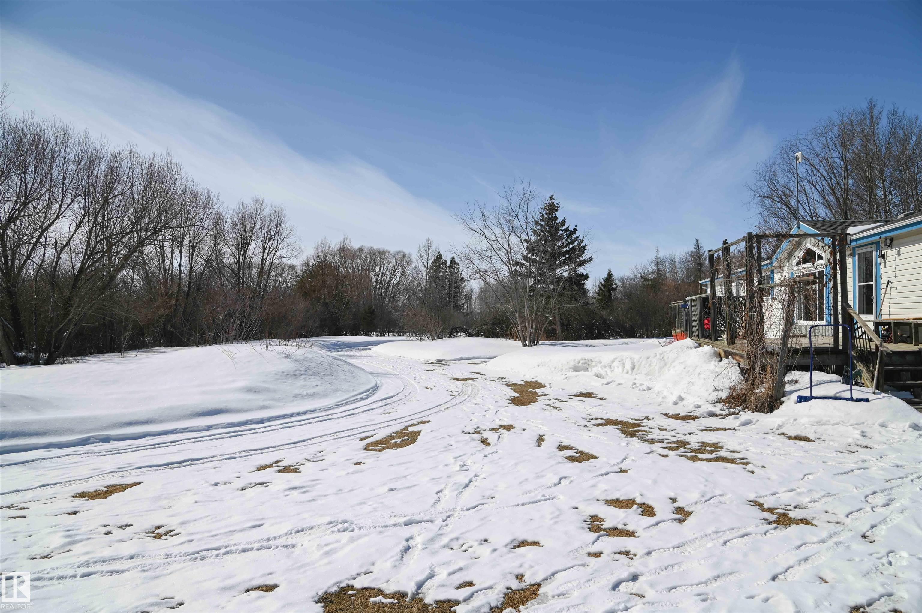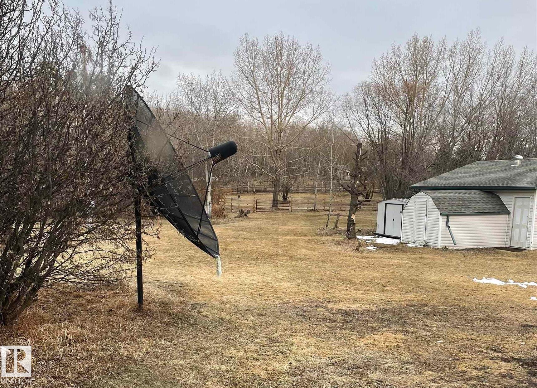 Just 35 minutes from Edmonton and only 5 minutes to Half Moon Lake, this affordable acreage offers the best of country living. Enjoy your own private 2 acres, fully fenced and set up with a horse corral and shelter, potting shed/greenhouse, fruit trees, wildflowers, and rose bushes. The large double garage is insulated and features a 30 amp plug and 30A heater. An electrified shed adds flexible space for a playhouse, bunkhouse, or extra storage. The spacious 1998 manufactured home (16x76) offers a great layout with 3 bedrooms and 2.5 bathrooms. Just a short trot away, you'll find the Rainbow Equitation Society and Half Moon Lake Natural Area, perfect for trail riding and hiking. A fantastic spot for riding, boating, fishing, and enjoying the country lifestyle, with only about 100 metres of gravel road to travel.
