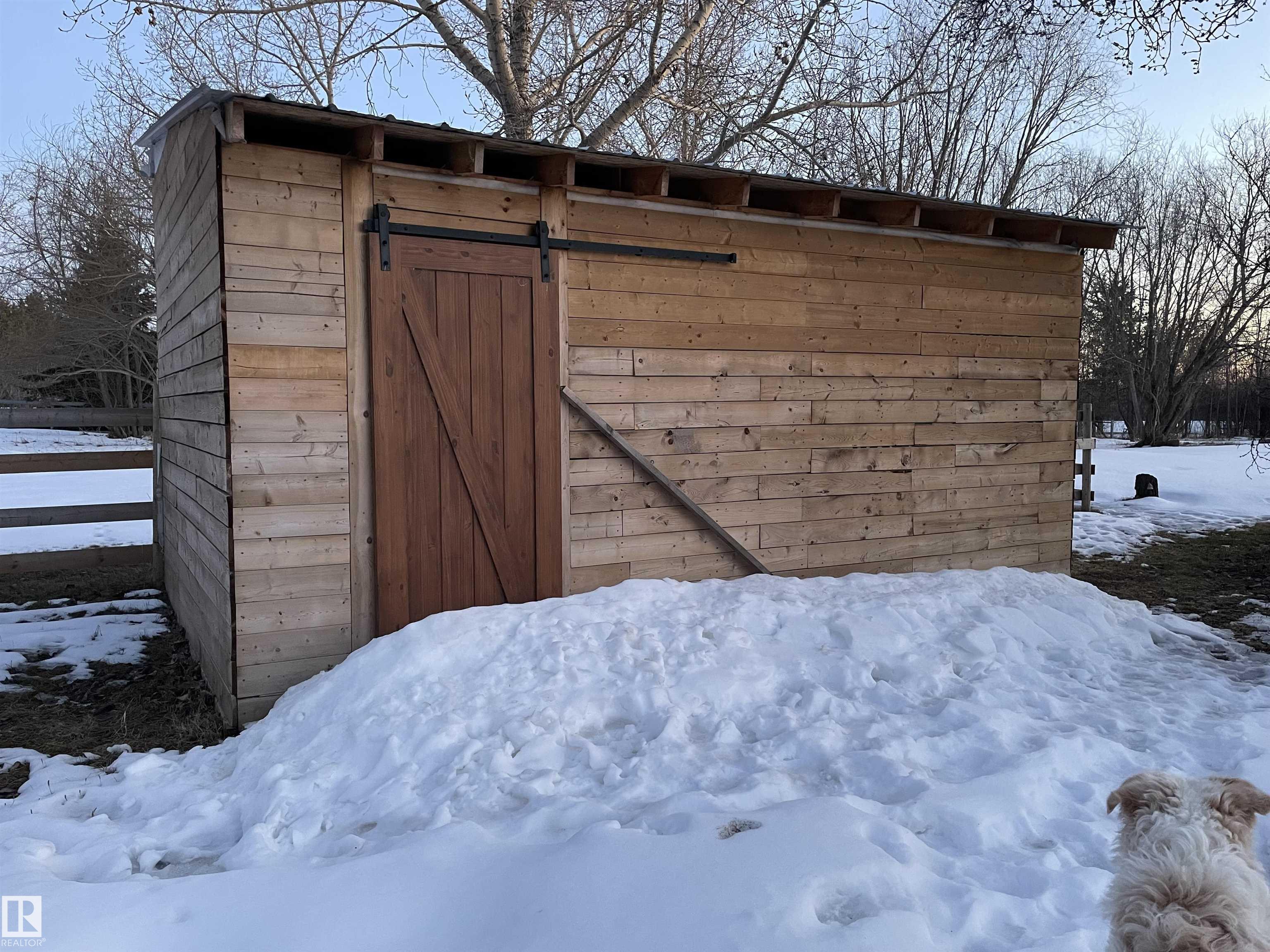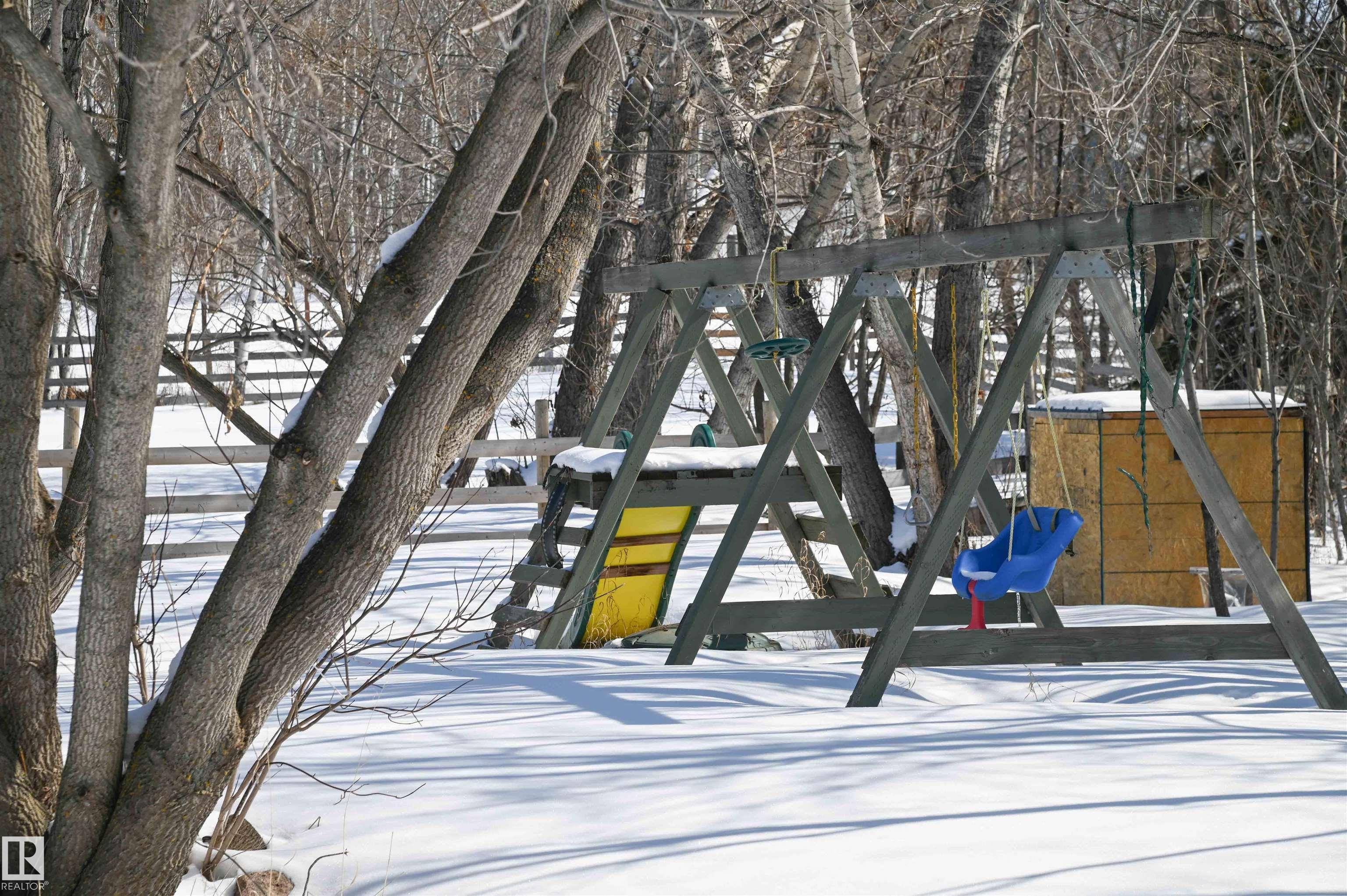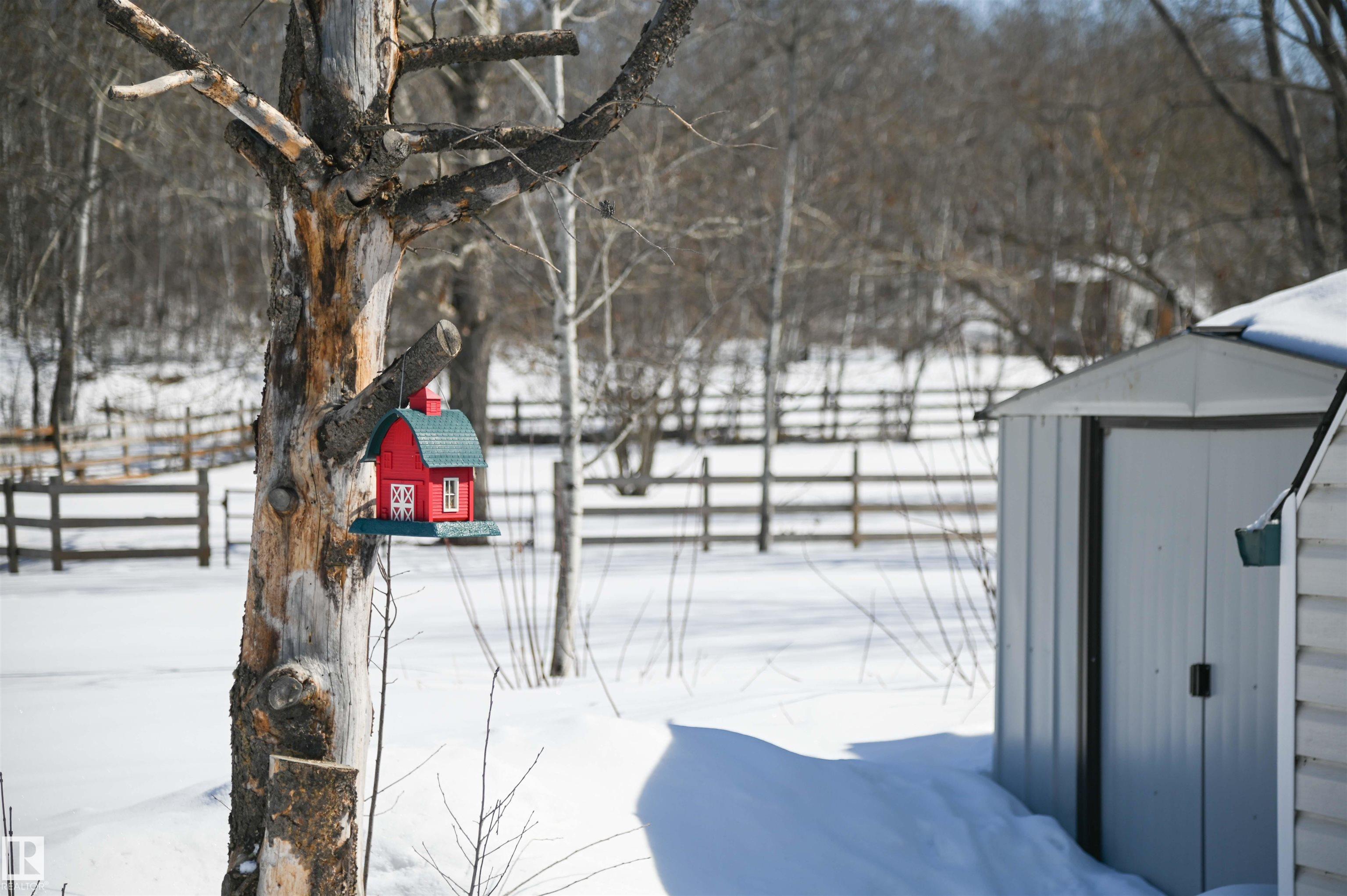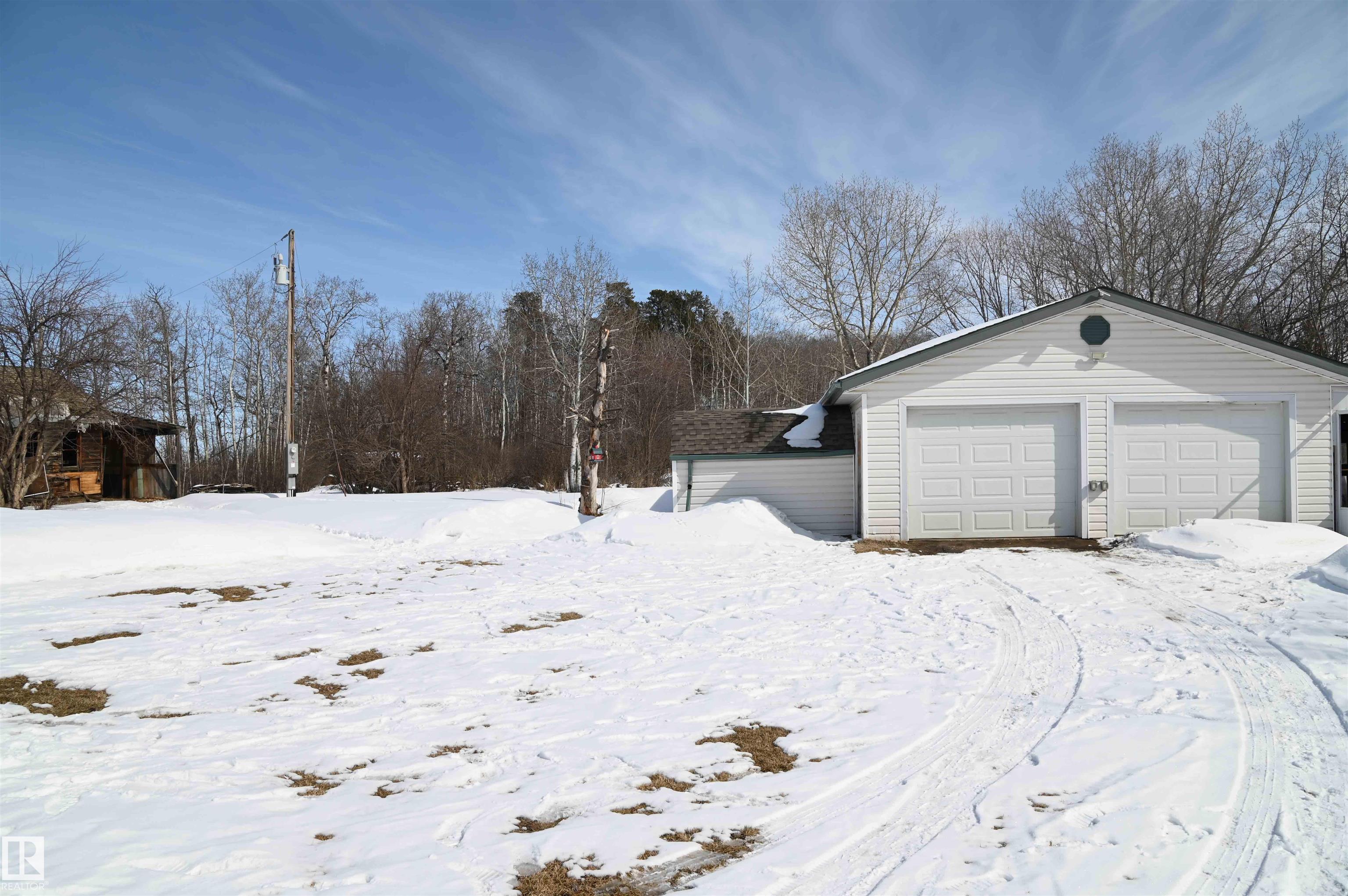Just 35 minutes from Edmonton and only 5 minutes to Half Moon Lake, this affordable acreage offers the best of country living. Enjoy your own private 2 acres, fully fenced and set up with a horse corral and shelter, potting shed/greenhouse, fruit trees, wildflowers, and rose bushes. The large double garage is insulated and features a 30 amp plug and 30A heater. An electrified shed adds flexible space for a playhouse, bunkhouse, or extra storage. The spacious 1998 manufactured home (16x76) offers a great layout with 3 bedrooms and 2.5 bathrooms. Just a short trot away, you'll find the Rainbow Equitation Society and Half Moon Lake Natural Area, perfect for trail riding and hiking. A fantastic spot for riding, boating, fishing, and enjoying the country lifestyle, with only about 100 metres of gravel road to travel.